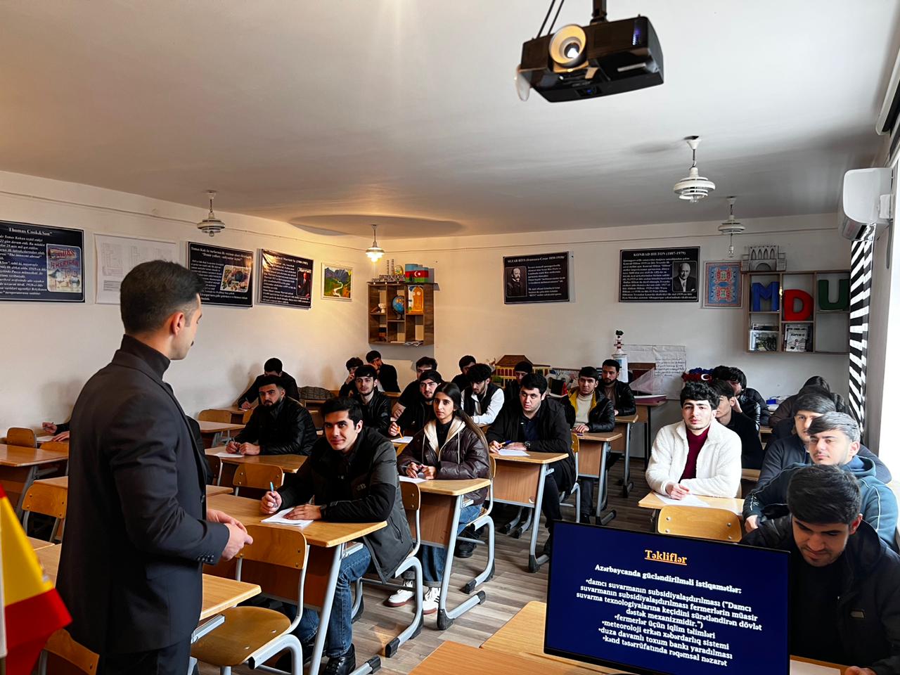 Mingəçevir Dövlət Universitetində kənd təsərrüfatının iqlim dəyişiklikləri şəraitində dayanıqlı inkişaf perspektivlərinə həsr olunmuş “İqlimə Dayanıqlı Kənd Təsərrüfatı: Müasir Çağırışlar və Adaptasiya Mexanizmləri” mövzusunda təlim təşkil edilib. Təlimdə tələbələr və gənc tədqiqatçılar iştirak ediblər. Tədbir çərçivəsində kənd təsərrüfatı sektorunda müşahidə olunan iqlim riskləri, su ehtiyatlarının idarə olunması, torpaq münbitliyinin qorunması və məhsuldarlığın dəyişən iqlim şəraitinə uyğunlaşdırılması məsələləri geniş şəkildə təhlil olunub. Təlim zamanı çıxış edən  İqtisadiyyat kafedrasının müəllimi Kənan Abbasov kənd təsərrüfatında temperatur artımı, yağıntı rejiminin dəyişməsi, quraqlıq hallarının intensivləşməsi və ekstremal hava hadisələrinin aqrar istehsala təsiri barədə elmi əsaslandırılmış məlumat təqdim edib, eləcə də bu istiqamətdə beynəlxalq nümunələr əsasında müqayisəli təhlillər aparılıb.  Təlimdə bildirilib ki, müasir mərhələdə kənd təsərrüfatının davamlılığının qorunması üçün ən vacib istiqamətlərdən biri resurslardan səmərəli istifadə və adaptiv idarəetmə modelinə keçiddir. Xüsusilə damcı suvarma texnologiyalarının tətbiqi, su itkisini minimuma endirən sistemlərin qurulması, meteoroloji erkən xəbərdarlıq mexanizmlərinin genişləndirilməsi və fermerlərin rəqəmsal məlumat platformalarına çıxış imkanlarının artırılması mühüm amil kimi qeyd olunub. Müzakirələr zamanı iqlim dəyişikliklərinə davamlı toxum sortlarının seçilməsi, duza və quraqlığa davamlı əkin materiallarının istifadəsi, həmçinin torpaq analizlərinə əsaslanan gübrələmə metodlarının kənd təsərrüfatında məhsuldarlığın saxlanılmasına ciddi töhfə verdiyi vurğulanıb. Qeyd edilib ki, aqrar sektorda rəqəmsallaşma yalnız istehsalın idarə edilməsini deyil, eyni zamanda risklərin əvvəlcədən qiymətləndirilməsini də mümkün edir. Təlim iştirakçılarına Azərbaycanda kənd təsərrüfatının iqlim çağırışlarına uyğun inkişafı istiqamətində dövlət siyasəti, subsidiya mexanizmləri və innovativ yanaşmalar barədə də məlumat verilib. Bildirilib ki, kənd təsərrüfatında dayanıqlılığın təmin olunması ölkənin ərzaq təhlükəsizliyi, regional inkişaf və ekoloji tarazlığın qorunması baxımından strateji əhəmiyyət daşıyır.