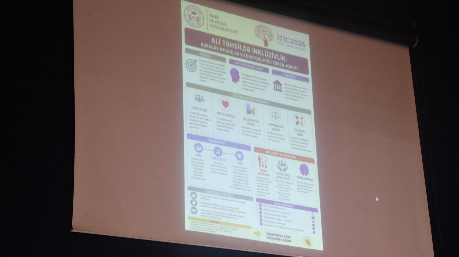 Panel iclası MDU-nun Psixologiya və pedaqogika kafedrasının müəllimi Aydın Kərimovun moderatorluğu ilə baş tutub. Müzakirələrdə inklüziv təhsil mühitinin formalaşdırılması, müxtəliflik və bərabərlik prinsiplərinin təmin olunması, eləcə də psixoloji rifahın qorunması məsələləri geniş şəkildə müzakirə olunub.