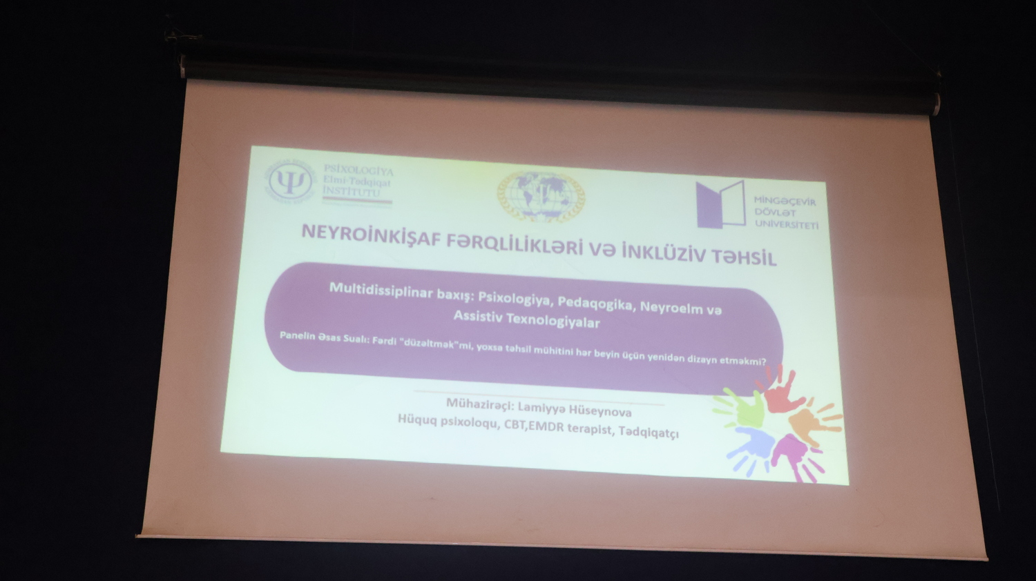 Panel çərçivəsində Aydın Kərimov “İnklüzivlik və rəqəmsal mühitdə özünüqiymətləndirmə”, Bakı Slavyan Universitetinin İnklüziv və adaptiv təhsil kafedrasının müdiri Arzu Məmmədova “Ali təhsildə inklüzivlik: bərabər imkanlar və dəstəkləyici təhsil mühiti”, Psixologiya Elmi-Tədqiqat İnstitutunun əməkdaşları Nigar Əsgərova “Təhsil mühitində inklüziv psixoloji dəstəyin rolu” və Lamiyə Hüseynova “Neyroinkişaf fərqlilikləri və inklüziv təhsil” mövzularında məruzələrlə çıxış ediblər.
