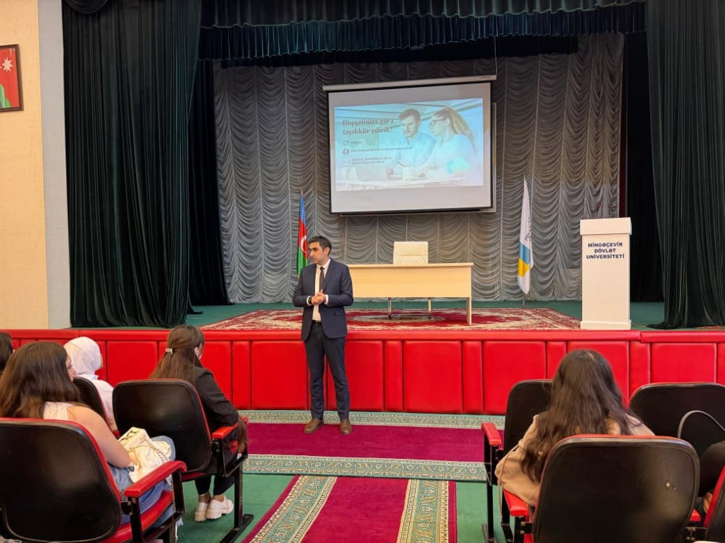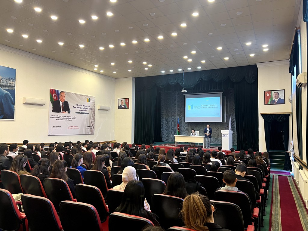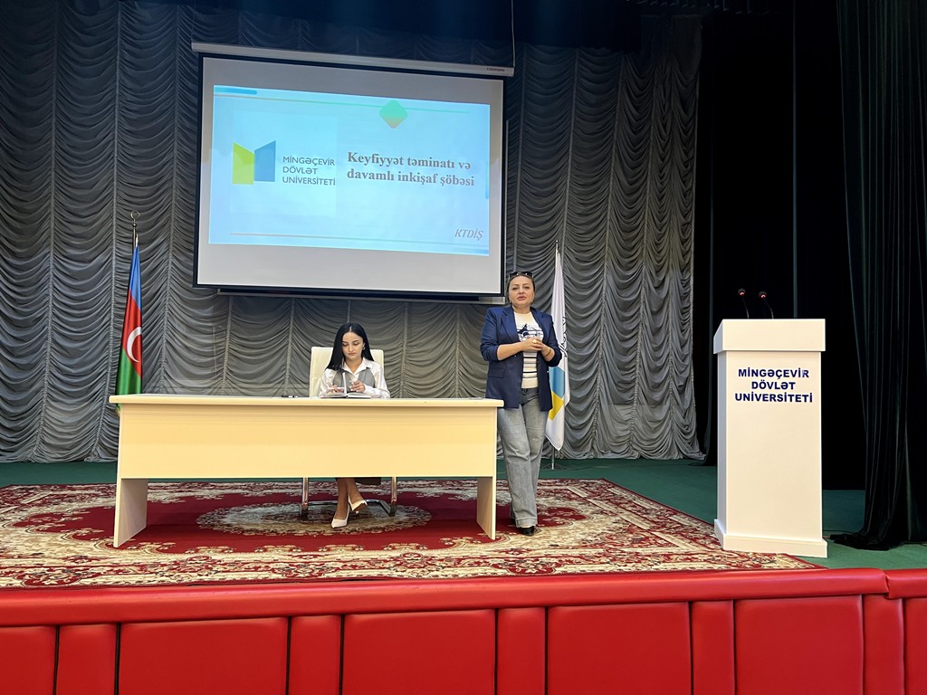 Daha sonra şöbənin mütəxəssisləri Aytən Musayeva və Tamara Xanlayeva müxtəlif istiqamətlər üzrə təqdimatlarla çıxış ediblər. Təqdimatlarda keyfiyyət nümayəndələrinin fəaliyyəti, beynəlxalq akkreditasiya prosesinə hazırlıq, ISO 9001 və ISO 21001 standartları üzrə sertifikatlaşdırma işləri, eləcə də tələbələrdən mütəmadi rəy və təkliflərin toplanmasının vacibliyi barədə ətraflı məlumat verilib.
